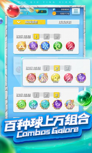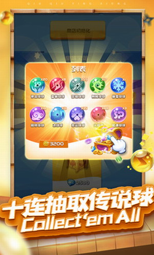 4、丰富多样的球类组合,40多种球类供您选择,重复性球类也可升级,利用您现有的球类组合战胜对手。
