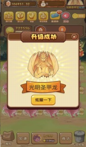 4、升级,升级后将之前保存的金币全部花光买龙;