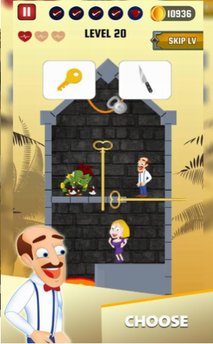 是一款非常刺激有趣的烧脑解谜游戏,玩家需要动动脑筋,按顺序拔出钥匙。那个人可以安全地出来了。如果按错误的顺序拔出钥匙,那么男子就会暴露在各种可爱的危险中,无法闯关。不要错过你喜欢的选手。