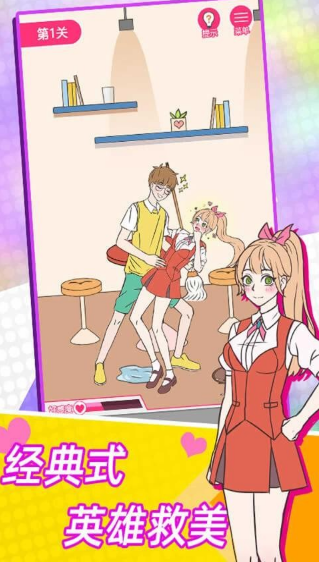 是一款画风清新好看的休闲益智手游。在游戏中,你将扮演男主角,扮演游戏中所有的女孩。面对不同的女孩,采用不同的手段,成功地搭载女孩,增进她们的美好感受。全新的解谜之旅,卡通日本游戏风格,丰富多彩的精彩剧情,魔性趣味游戏,各式各样的萌妹等你来玩,能不能把所有的女孩都玩成功?