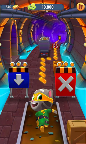 1、好玩休闲的跑酷探险游戏,控制可爱的汤姆猫不断前行,收集金砖、道具获得高分;