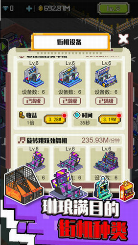 1、随着店铺水平的提升,可以解锁更多不同种类的街机;