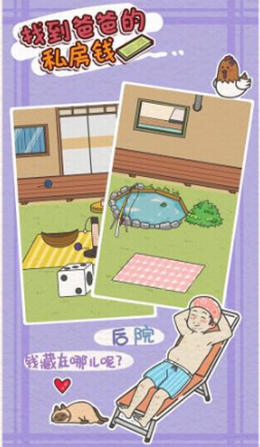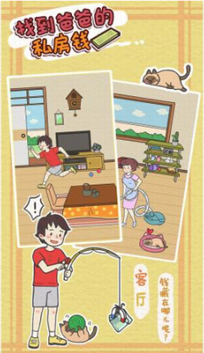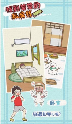 是一款非常有趣的拼图和休闲游戏。在这个游戏中,玩家将成为熊孩子。你的任务是在房子的每个角落找到你父亲藏起来的零用钱。毕竟是从你妈妈那里偷偷存下来的,所以就算你发现了,你爸爸也不敢气愤地说出来,你只需要找个私房钱,随便花就行了。不要放过房子的每一个角落。找到私人资金,你就能成功。如果你感兴趣,来下载吧。