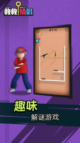 轻松有趣的拉环拼图拯救情侣游戏。拯救情侣金币无限版是一款以解谜、闯关为主题的休闲游戏。游戏设置了非常丰富的关卡挑战,独特的绘画风格和简单易用的操作模式。还有非常有趣的游戏过程,轻松简单的手指点击操作,在游戏中,每个男女关卡都会设置在同一空间的不同地方,障碍重重。会有恐龙拦截,会有炸弹伏击,中间会有一系列障碍物横穿,玩家需要动脑筋合理利用场景布局和一些道具解决困难来填补空白,让他们齐聚一堂,点赞,快来下载体验吧!!游戏功能!
