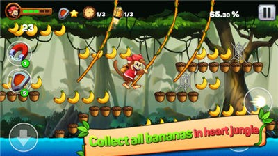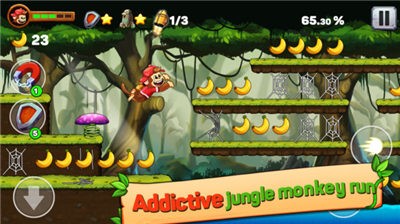 欢乐岛猴子跑酷是一款挑战内容精彩有趣的休闲游戏,以灵活的操作操控屏幕上的猴子,森林中的冒险挑战不断,一路上会遇到各种障碍和陷阱,以敏捷的姿态获得更多成绩,挑战过程中收集的香蕉越多得分越高,全新的场景也会不断开启。等你体验不一样的冒险!