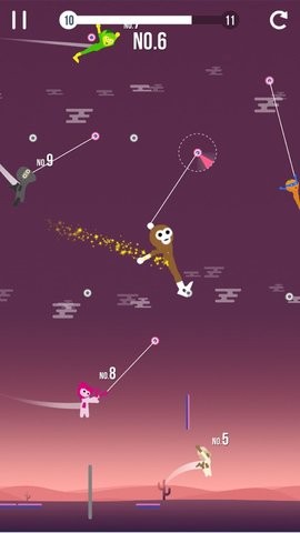 穿越天空是一款别开生面的挥杆奔跑酷炫冒险游戏,玩家在游戏中通过点击来控制反派的挥杆,让他们在空中自由飞翔,操作方式难度大,魔力十足,流畅,操作简单,可以用绳子在空中自由飞翔,在无限的挑战中,体验指尖飞行的乐趣,可以尝试上百个不同的关卡。