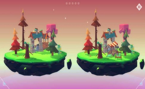 秘境是一款卡通画面休闲益智游戏,会有各种关卡等着你,带给你各种有趣的冒险和挑战,玩家可以探索各种有趣的迷你小岛。在游戏中,玩家使用手指的滑动控制来转动每个关卡的土地,找出两块土地的不同之处。
