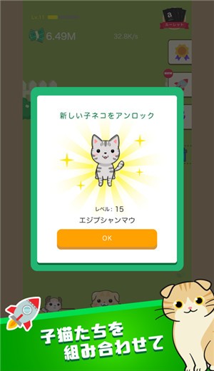 请和小猫玩得开心!有50种不同种类的猫等着你解锁,英国短毛猫,拉格多尔猫等等。幸运的是,这里有各种各样可爱的小猫!我永远不会让你失望的!