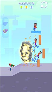 《愤怒的火箭筒》是一款3D卡通风格的休闲益智游戏,游戏中玩家要用火箭筒调整角度摧毁前方的障碍物,最后击中目标才能取胜,游戏中每枚关卡火箭数量有限,玩家想要开动脑筋想出最好的办法,玩家需要计算射击角度和距离,快速射击破碎的塔防。只要计算出角度,还是很容易的。