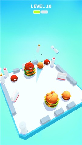 休闲竞技类的迷你游戏,很多特别的设置,超级道具为您的汉堡添加人物,增强冲击能力,打败所有对手!