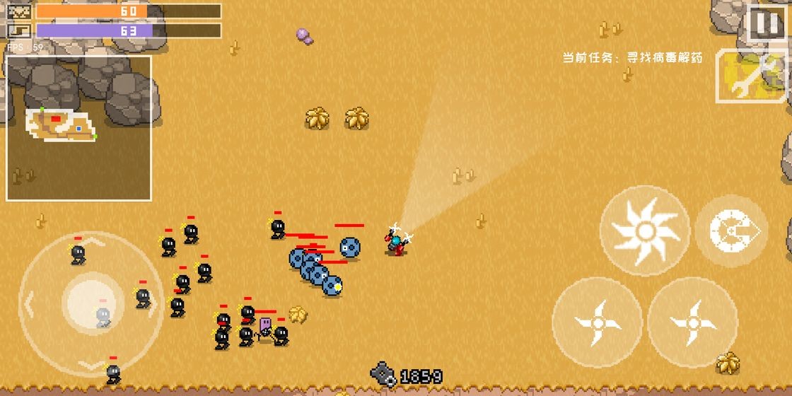 收集地图上各种强大的武器,收集不同的装备武装自己,同时不断提高战斗水平。