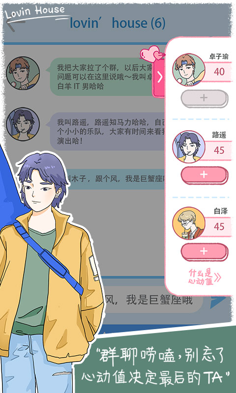 生活有甜蜜也有苦涩,对三位男生的心动值,他们之中谁才是“我”真正喜欢的那个人呢?心动的次数不会骗人,故事的最终结局到底会发生什么?lovin house的成员已经在小屋等你啦,速来!