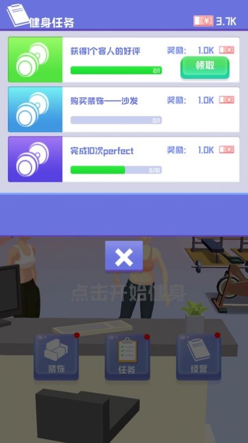 游戏采用非常有趣的任务模式,任务会逐步推进,帮助玩家运营健身房。