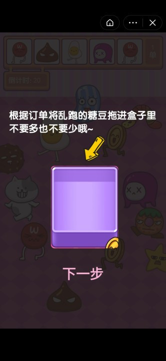 点击手指轻松玩法,找到更多的糖吃豆人,放入不同的盒子。