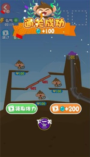 帮助小猴子消灭怪兽,根据赛场上的情况给出正确的战术指导,尽量完美地通过每一关,解锁不同怪兽皮肤的使用。在挑战的同时带给你更多乐趣。