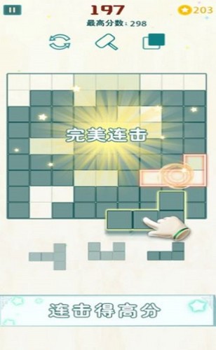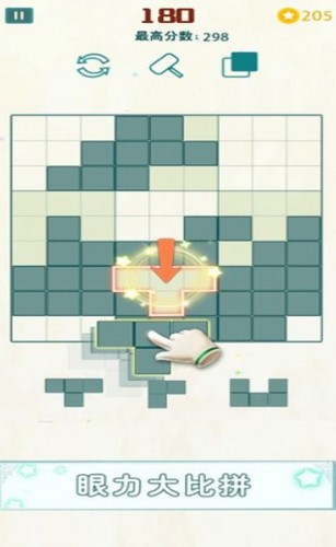 的评测和游戏独特的淘汰方式,让玩家在游戏中不断挑战极限,填满九宫方格或棋盘的任意横、竖一排都可以一次淘汰。拖动棋盘下方的方块并将它们放在棋盘上,以便不同形状的方块可以填充棋盘中九个方格中的任何一个。