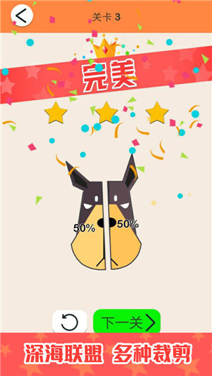 深海联萌是一款简单有趣的休闲小游戏,各种趣味等级等你来玩。玩家在游戏中滑动手指划线,完美地将游戏中的图案分成两部分即可获得三星分数,即可完善通关并获得丰厚的奖励。各种趣味等级等你来玩,有丰富的挑战,玩家可以尽情玩游戏,带给你很多乐趣。