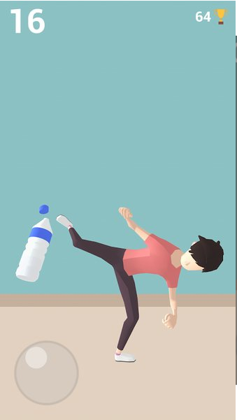 踢瓶盖挑战3D(瓶盖游戏)是一款模拟真实瓶盖挑战的游戏,游戏非常简单,控制你的角色转动身体踢开瓶盖,游戏非常有趣,低模游戏画面不会让人感觉粗糙,逼真的物理引擎,挑战不是那么容易成功。