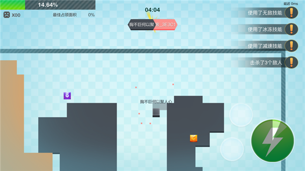 精彩有趣的战斗过程,各种挑战等着你来玩,你在战斗过程中一定要小心,有其他颜色的色块入侵,你可以选择逃跑,或者正面攻击。你可以使用多种策略来完成更多的挑战,通关收集更多的箱子,让你的实力变得更强大,轻松击败对手获得奖励。