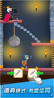 《火柴人神逃亡5》是一款2D卡通风格的休闲益智游戏,作为聪明的红娘需要不断解决每一关的内部结构,每一关都需要玩家去探索,解决所有困难才能拯救心爱的公主,在卡通画面中一定要帮王子找到线索,然后一步步拿到钥匙,避开陷阱和障碍,最终找到公主逃脱。