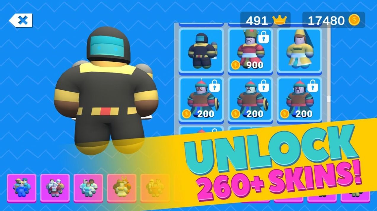 3、260多张皮肤可以自由打开,让你体验里面的乐趣,还有很多层次可以自己去探索。秋豆极限派对赛游戏点评