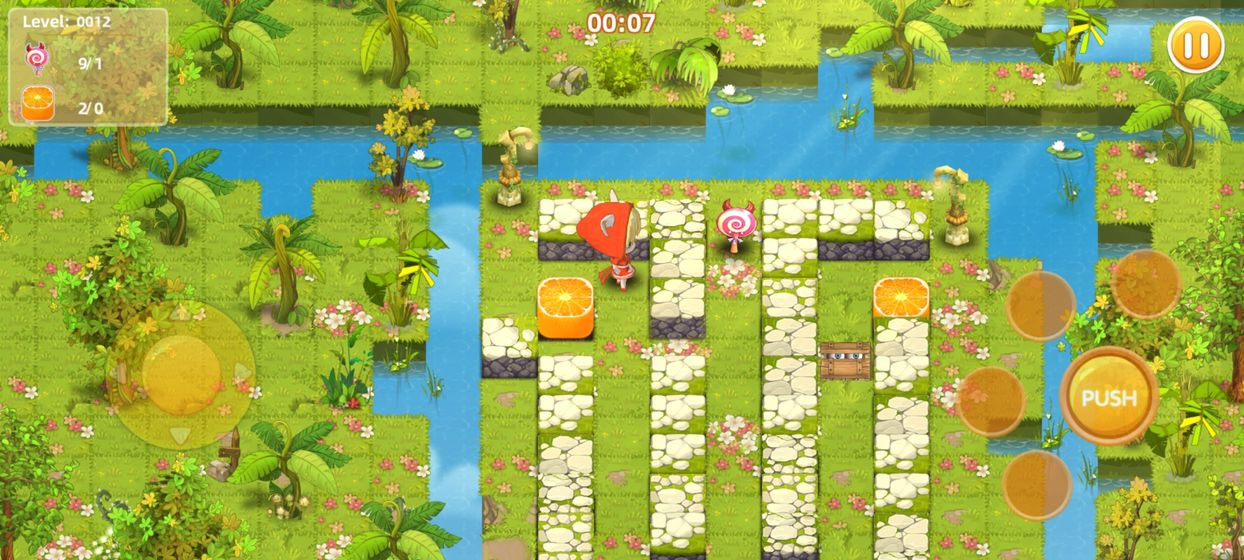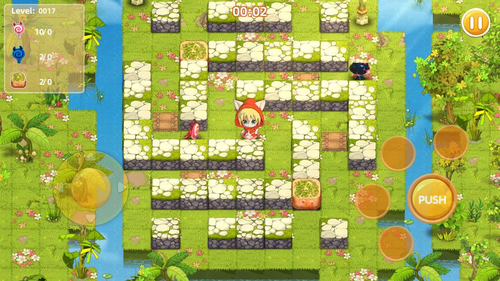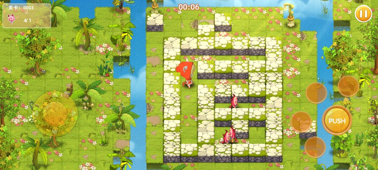 爱丽丝意外闯入异国他乡。在这个童话世界里,有各种各样的怪兽,推着周围的石头就能把它们夷为平地。有那么多有趣的关卡等着你去玩,推盒的时候仔细想想,不要盯着一个盒子,同时专注于几个盒子,这样才能赢得最终的胜利,收集到很多好玩、好吃、好看的食物。