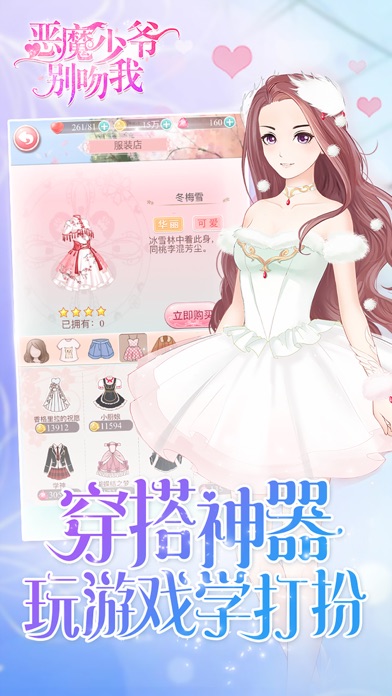 恶魔少爷别吻我游戏根据同名小说衍生改编过来的融合恋爱+装扮剧情文字闯关游戏,在这里,你将扮演一名集万千宠爱于一身的校园女主,拥有各种精美人物CG可供玩家选择体验,你将以女主的视角去经历一场校园纯纯恋爱,与你的恶魔少爷从相遇相识、相知到相爱,一点点加深羁绊,体验一场属于你的甜蜜爱恋。
