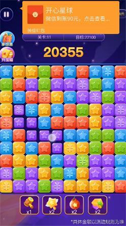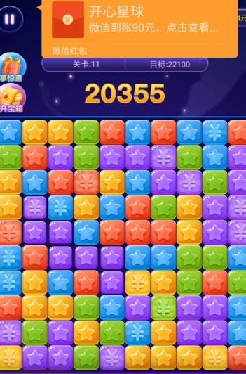 开心星球是一款非常受玩家喜欢的休闲益智游戏,玩家通过消除相同的星星来获取不同的红包奖励,非常的轻松,经典的三消玩法,给你原汁原味的快感,游戏的关卡也是不断的升级,让你玩的更加过瘾!