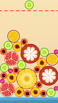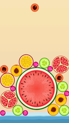 首先,这个游戏是个类似于数字合成游戏,其重点就是将相同的水果合成出更上一级的水果,知道最后合成大西瓜,所以我们在玩这个游戏时,一定要注意将大的水果放在下面,小的水果放上面,不然的话小水果在想相互合成就会很困难。
