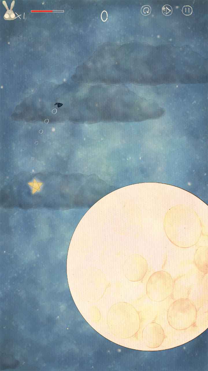 2、它们不停地绕着月球跳动,按住屏幕可以降低兔子的跳跃高度;