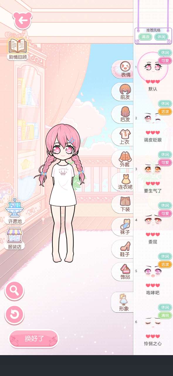 2.针对角色的发型和面部表情也可以选择,拥有各种不同形象的美少女装饰。
