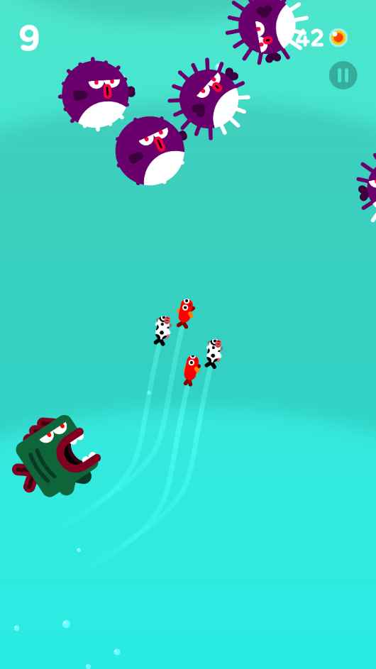 2.随着玩家体积的增大可以获得更快的速度和捕食量,也能更快的成长,游戏也会有很多道具可以加快速度或防御伤害。