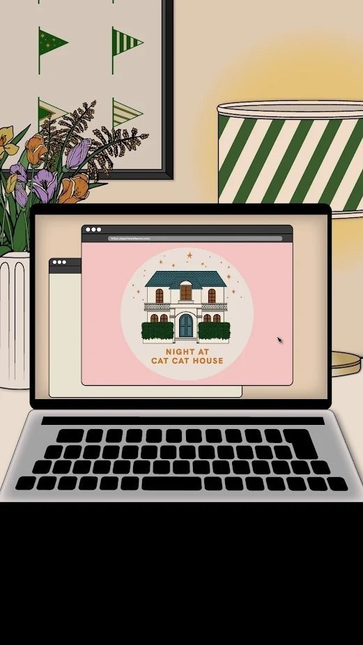 1.经典的卡通风格,玩家将探索神秘的猫咪屋,营造非常神秘恐怖的氛围,同时采用暖色调又能缓解一定的探索氛围。