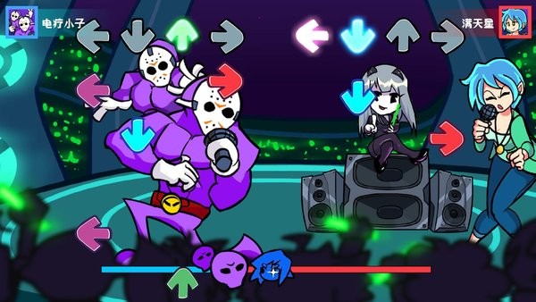周五夜放克黑色星期五之夜游戏支持玩家与真人玩家联机对战,可以与全世界的音乐爱好者一起竞技,还能有独特的排行榜,可以带给玩家非常娱乐的游戏环境,忘记一切的烦恼。