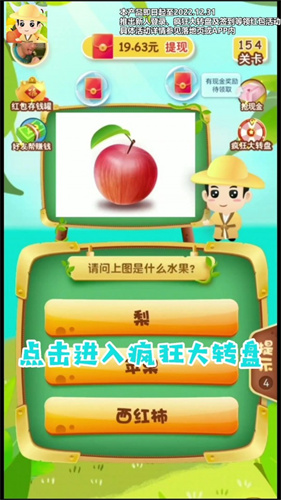 和我猜水果是款超好玩的休闲益智类游戏,玩家可通过猜对不同水果来获得红包奖励,且类型多样的水果将带给你更多不同的挑战玩法,并完成不同关卡任务让自己有更多收获,且所有红包均可进行提现,每天登录也能获得不同福利可根据挑战提示让自己获得更多红包带来不同趣味。感兴趣的玩家赶紧下载吧!