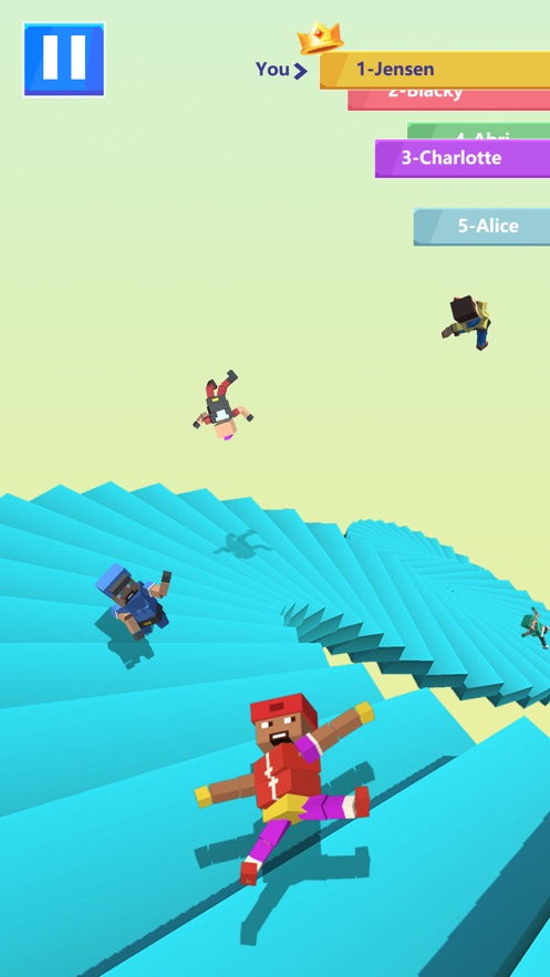 1.多种多样的楼梯等着玩家,可以呈现自己的花式下楼方式,第一名到达终点即可。