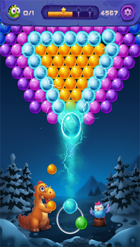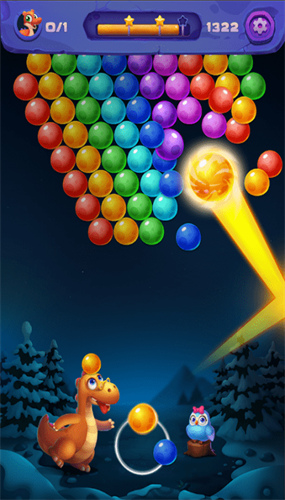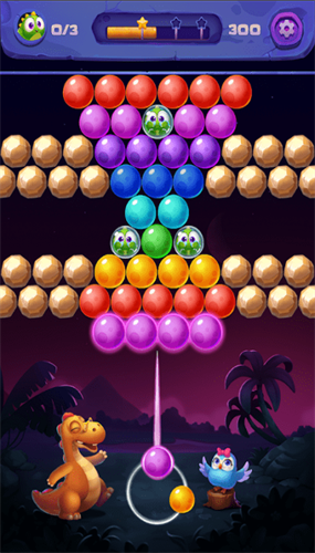 此款游戏主要以侏罗纪时代为背景,玩家需要不停消除泡泡拯救小恐龙,让我们帮助主人公拯救小恐龙吧!