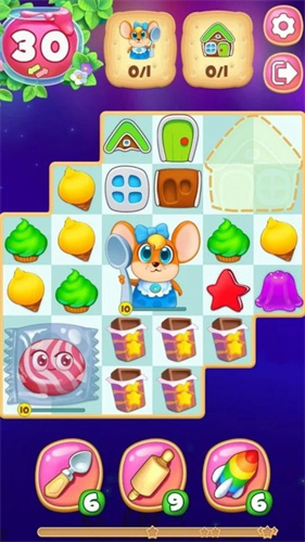 此款游戏中需要尽可能将规定糖果收集到,如果用完步数未收集将导致失败,适合打发时间,喜欢的玩家不要错过哦!