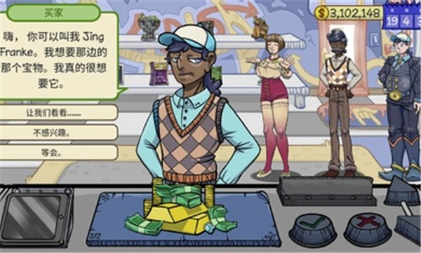 3、拥有多样雇员养成系统,可招募鉴定师、收银员等角色,升级其技能提升交易效率,特殊雇员还能识破骗局。