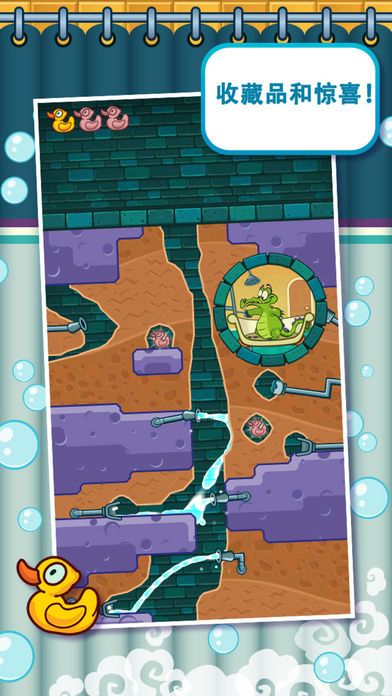 3、物品收集功能:在引导水流过程中收集橡皮鸭、积累一定数量可解锁隐藏关卡与游戏成就。