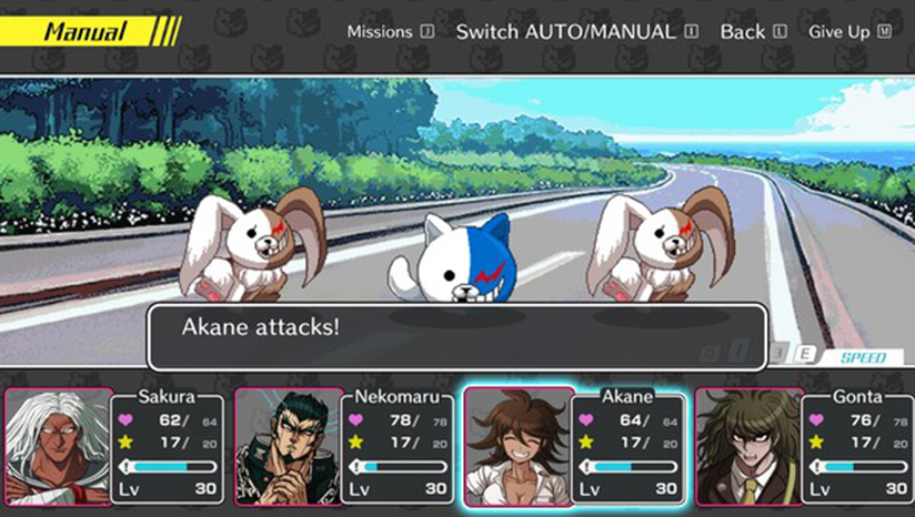 幸福弹丸论破汉化版的战斗模式可以与棋盘游戏中的战斗广场分开进行。培养角色并组建最多四人的队伍,并挑战 200 层的绝望之塔,那里等待着 Monokuma 型怪物。在绝望之塔中,敌人一波又一波地攻击,玩家在胜利时获得Monokuma奖章。玩家需要在学习技能和装备角色的同时提高角色的等级才能取得胜利。