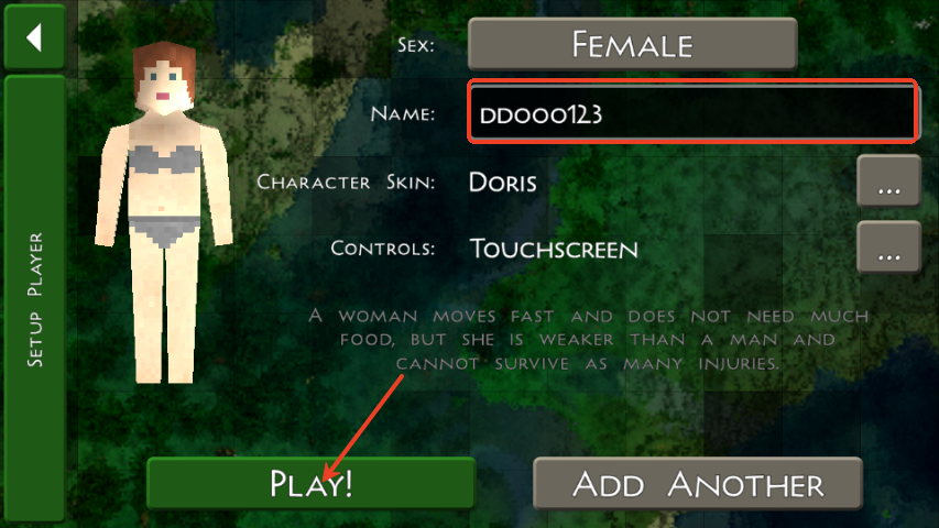 4、之后就可以创建角色了,点击下方的“play”开始游戏;