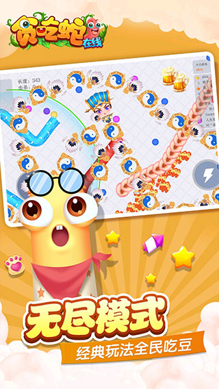 贪吃蛇在线赚钱红包版是一款可玩性极强的休闲竞技手游,游戏不仅画风精美细腻,而且其推陈出新的玩法元素,Q萌可爱的贪吃蛇造型,赋予了玩家极大的趣味性。并且贪吃蛇大作战操作十分简单,采用了横板的操控方式,开局你只有一条小蛇,你需控制摇杆与走位来控制你的小蛇,这一过程中你可以吃掉地图中的彩色小圆点慢慢长大,也可以用巧妙的走位让别的小蛇撞到你身上,从而迅速成长起来,荣获第一。为了增添玩家的趣味性,贪吃蛇大作战游戏除了经典的对战模式之外,还推出了限时模式、团战模式、社交战队、挑战模式等多种玩法,每种玩法都独树一帜,可轻松提高玩家的乐趣所在。感兴趣的小伙伴可千万不要错过啦,快来下载体验吧。