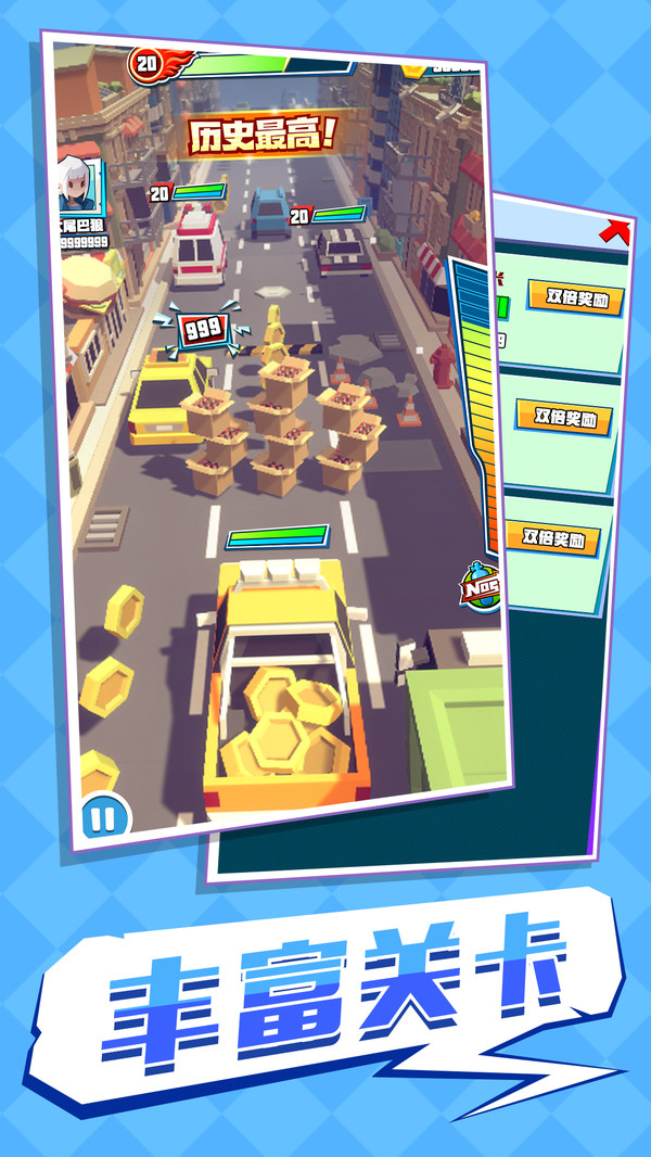 疯狂撞撞撞是一款刺激的赛车碰撞游戏,在游戏中你将灵活的控制赛车,在丰富的关卡中完成趣味的挑战比拼,并收集关卡中的金币和道具,发起一系列的碰撞并展开破坏摧毁这座城市中的一切。