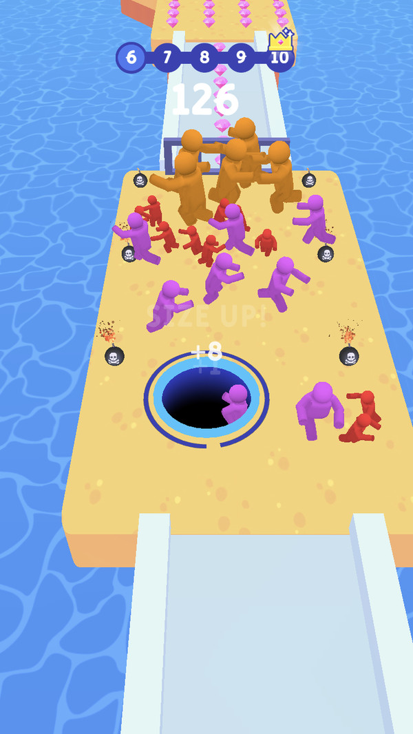 游戏具有超魔性的玩法和挑战氛围,你可以通过简单明了的操作方式配合精致的画面效果,灵活的操作控制黑洞自由的移动吞噬掉所有的小人,完成任务目标值后即可进入到下一个关卡比较考验你的操作实力,才能顺利的完成挑战。