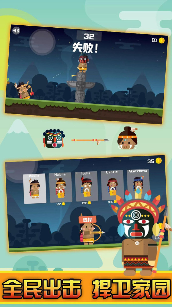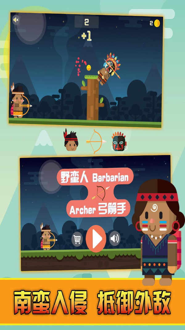 按住屏幕调整弓箭出手的方向,时机和角度合适时,松开屏幕使弓箭出手。 切记,你只有一次射死野蛮人的机会,若错失目标,野蛮人将反击! 命中野蛮人的头部将会得到额外的金币,连续三次命中头部更会得到大量得分