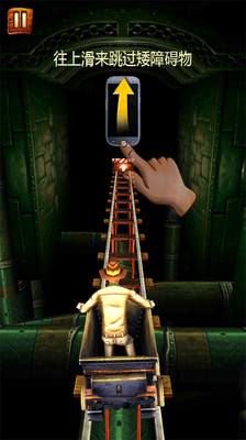 2、你乘坐着小矿车在轨道上奔跑,你能坚持多久?滑动你的手指,让小矿车跳动起来,并且收集更多的宝藏吧.