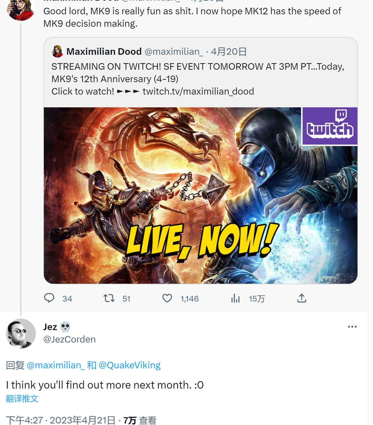 最近有传闻索尼PlayStation发布会可能在5月召开,若真如此,对《真人快打12》来说是一个非常好的登场机会;